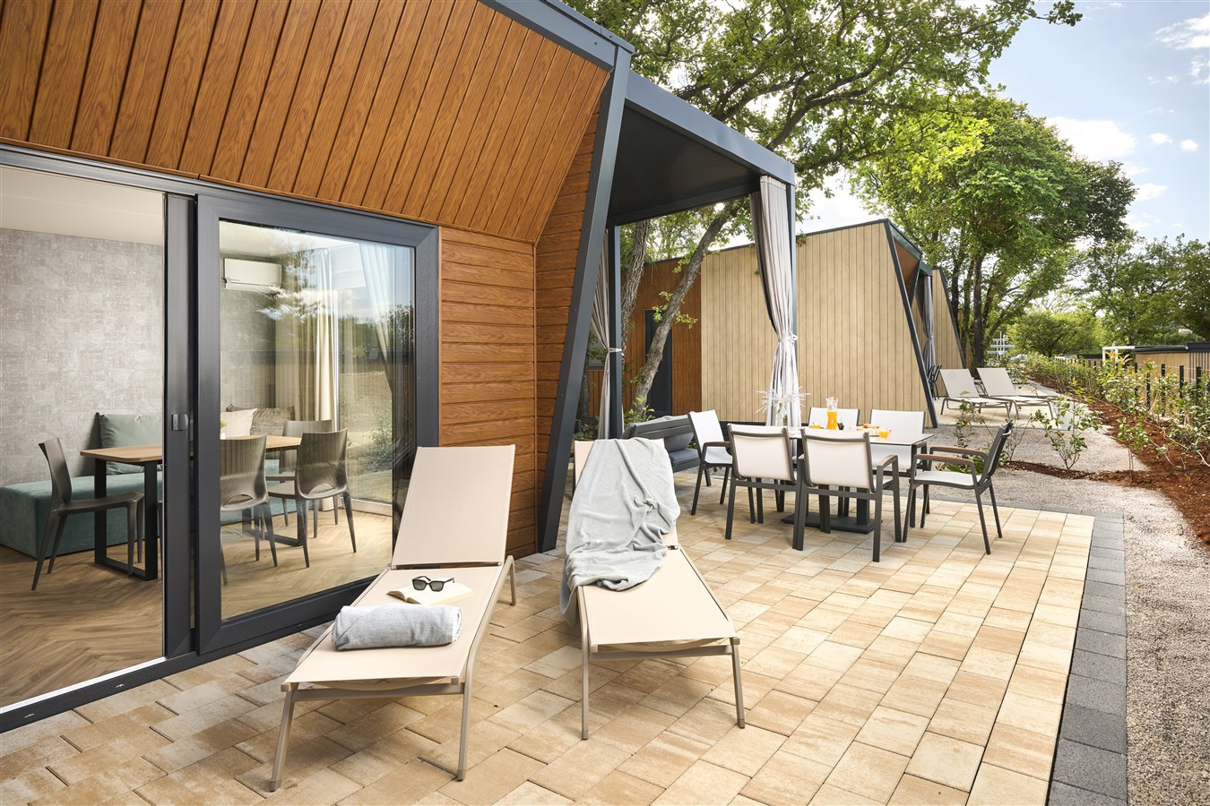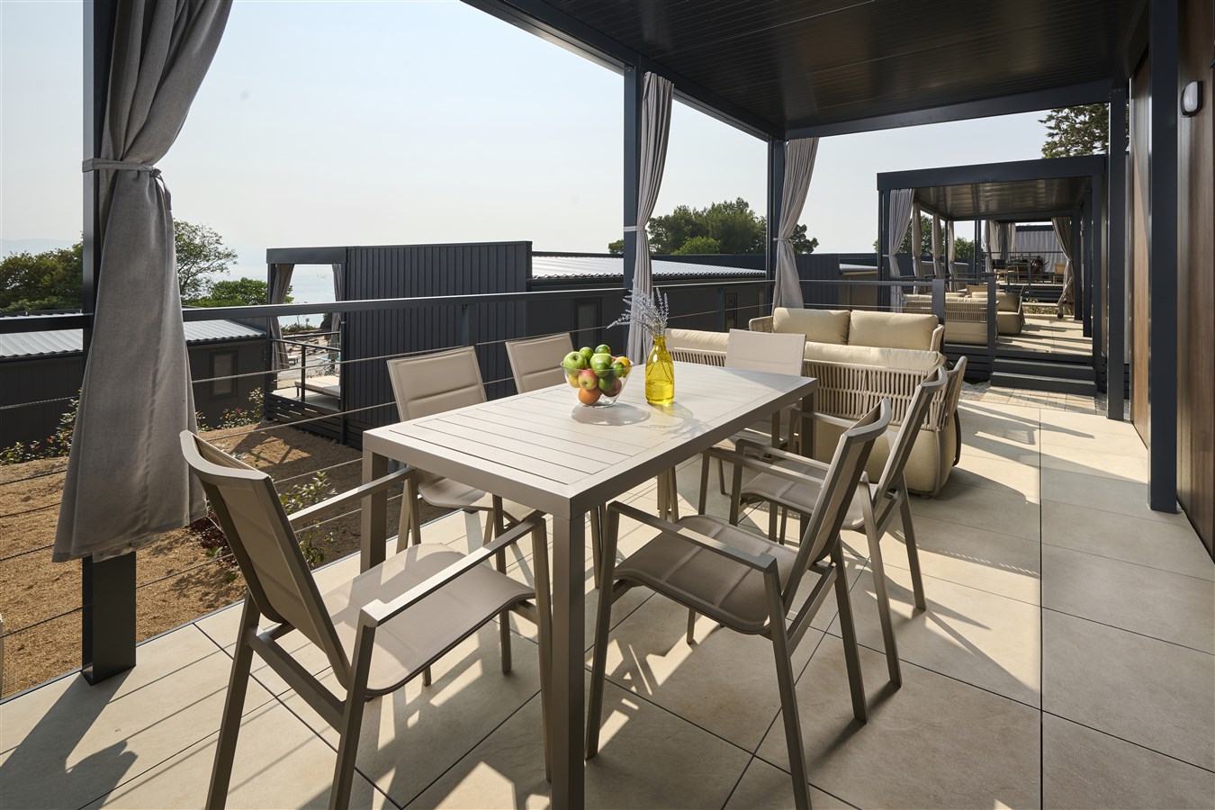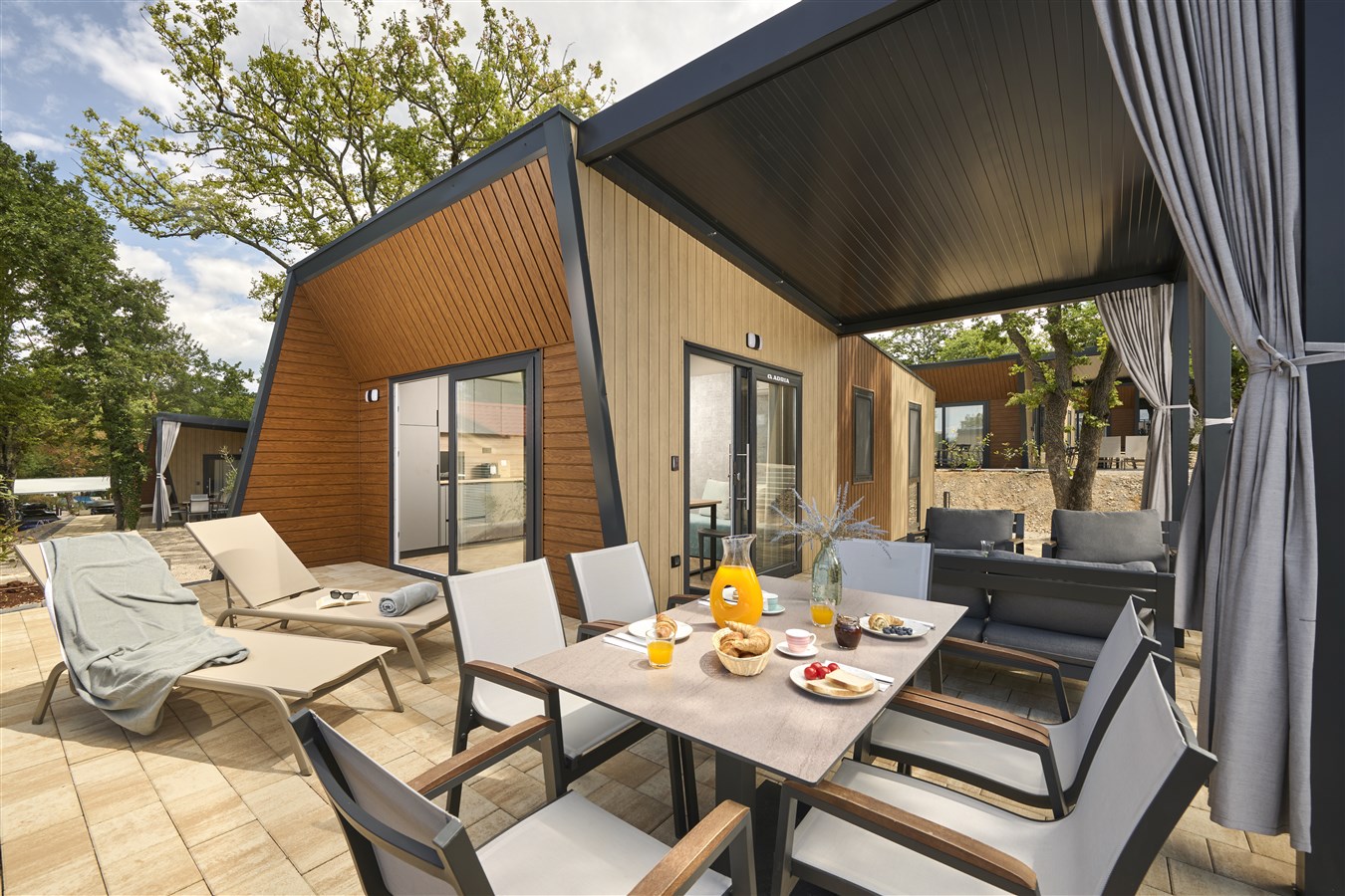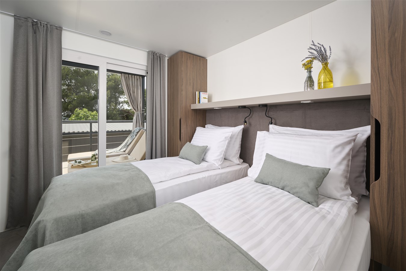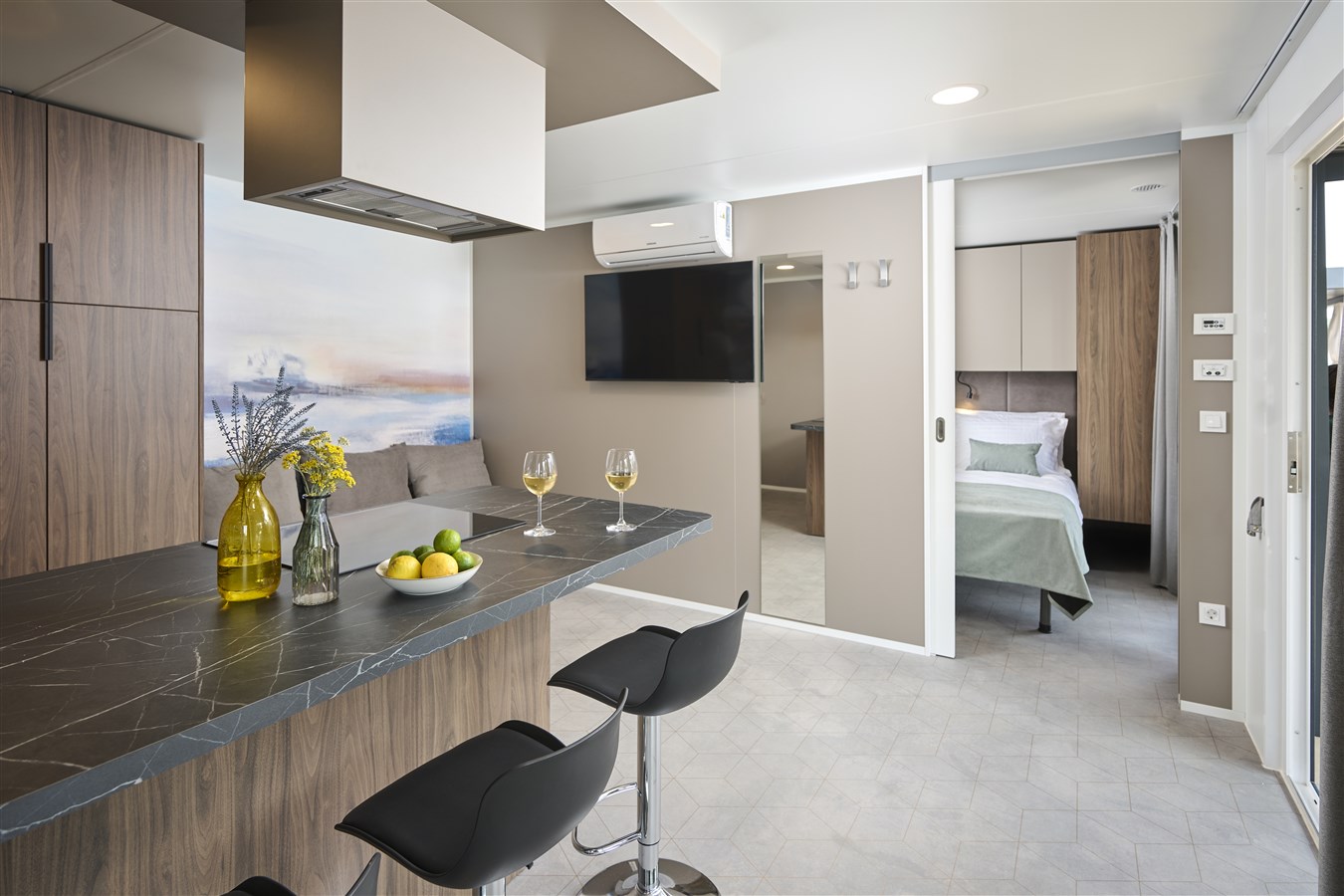 Moderně vybavené mobilní a glampingové domky, ve kterých je plně vybavená kuchyň (konvice, kávovar, mikrovlnná trouba, myčka nádobí, lednice), fén, trezor, klimatizace.Mobilní domek Premium - 34 m2 - 2 dvoulůžkové ložnice (jedna s manželskou postelí, druhá s oddělenými lůžky), 2 koupelny se sprchovým koutem, obývací pokoj s plně vybavenou kuchyní a rozkládacím gaučem pro 1 osobu, terasa (26 m2) s posezením (stůl, 6 židlí, 2 lehátka).Glampingový domek Luxury - 41 m2 - 2 dvoulůžkové ložnice (jedna s manželskou postelí, druhá s oddělenými lůžky), 2 koupelny se sprchovým koutem, obývací pokoj s plně vybavenou kuchyní a rozkládacím gaučem pro 1 osobu, terasa (14 m2) s posezením (stůl, 4 židle, 2 lehátka).Mobilní domek Amber Luxury - 41 m2 - druhá řada od moře - 2 dvoulůžkové ložnice (jedna s manželskou postelí, druhá s oddělenými lůžky), 2 koupelny se sprchovým koutem, obývací pokoj s plně vybavenou kuchyní a rozkládacím gaučem pro 1 osobu, terasa (27 m2) s posezením (stůl, 6 židlí, 2 lehátka).