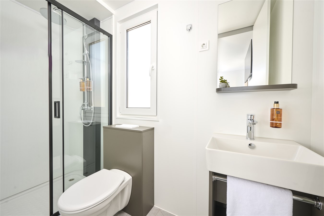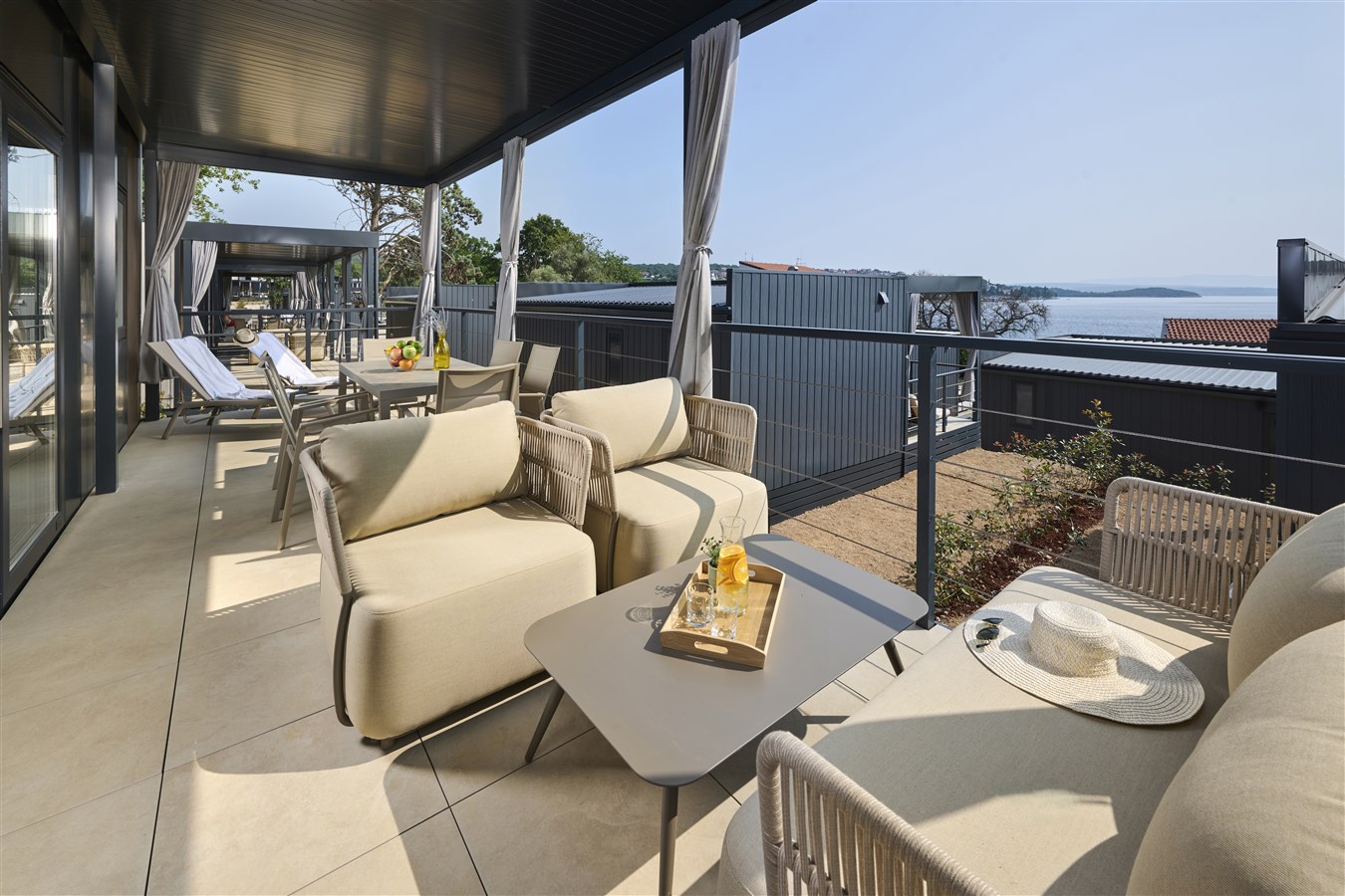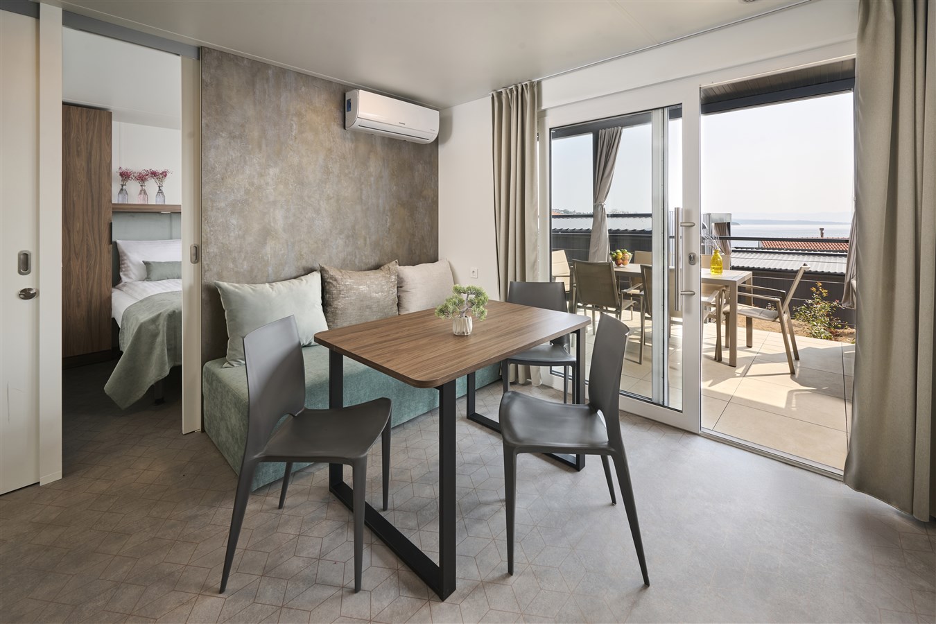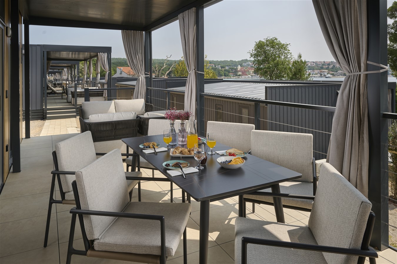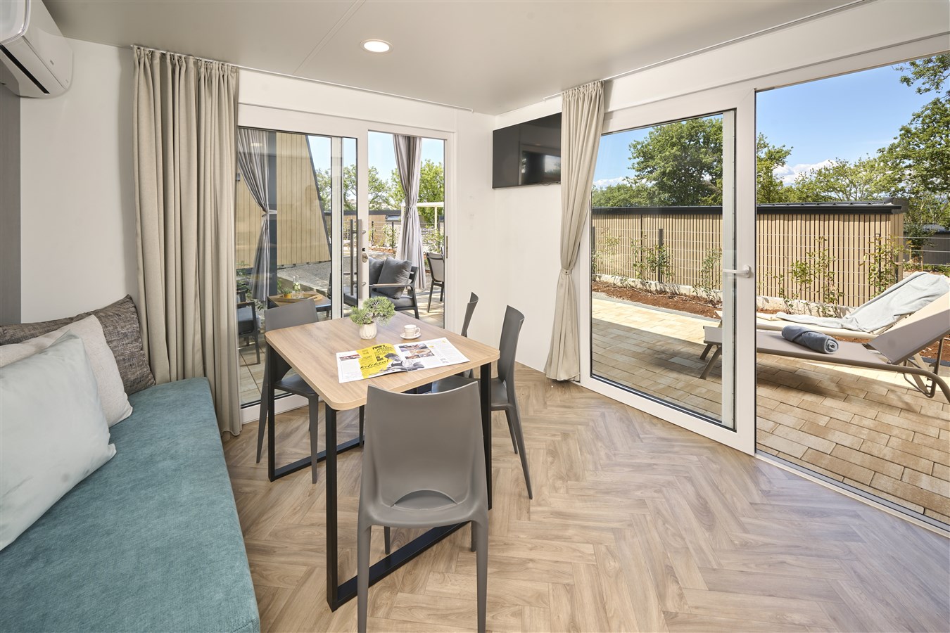 Moderně vybavené mobilní a glampingové domky, ve kterých je plně vybavená kuchyň (konvice, kávovar, mikrovlnná trouba, myčka nádobí, lednice), fén, trezor, klimatizace.Mobilní domek Premium - 34 m2 - 2 dvoulůžkové ložnice (jedna s manželskou postelí, druhá s oddělenými lůžky), 2 koupelny se sprchovým koutem, obývací pokoj s plně vybavenou kuchyní a rozkládacím gaučem pro 1 osobu, terasa (26 m2) s posezením (stůl, 6 židlí, 2 lehátka).Glampingový domek Luxury - 41 m2 - 2 dvoulůžkové ložnice (jedna s manželskou postelí, druhá s oddělenými lůžky), 2 koupelny se sprchovým koutem, obývací pokoj s plně vybavenou kuchyní a rozkládacím gaučem pro 1 osobu, terasa (14 m2) s posezením (stůl, 4 židle, 2 lehátka).Mobilní domek Amber Luxury - 41 m2 - druhá řada od moře - 2 dvoulůžkové ložnice (jedna s manželskou postelí, druhá s oddělenými lůžky), 2 koupelny se sprchovým koutem, obývací pokoj s plně vybavenou kuchyní a rozkládacím gaučem pro 1 osobu, terasa (27 m2) s posezením (stůl, 6 židlí, 2 lehátka).