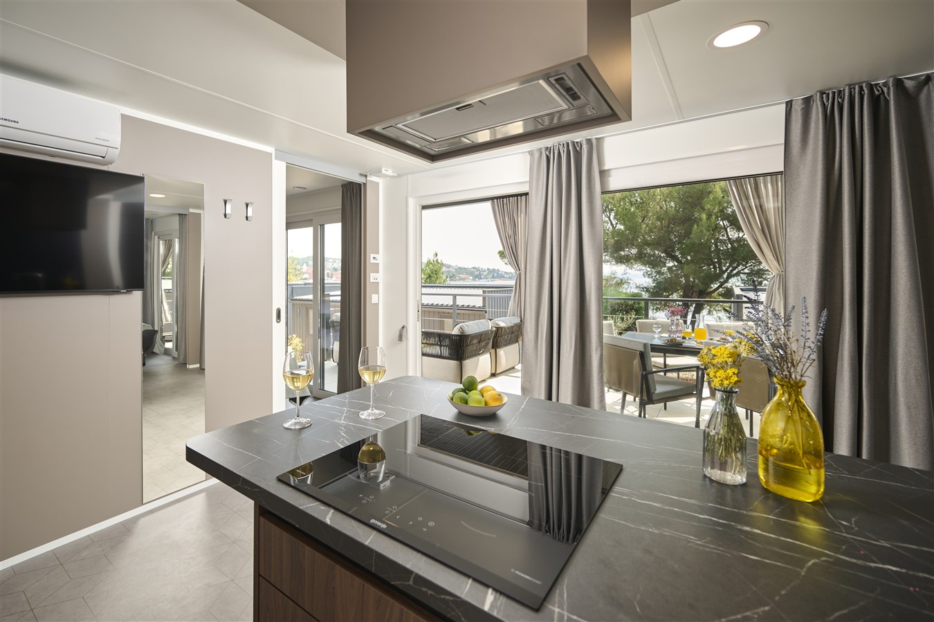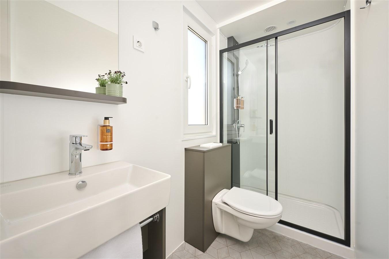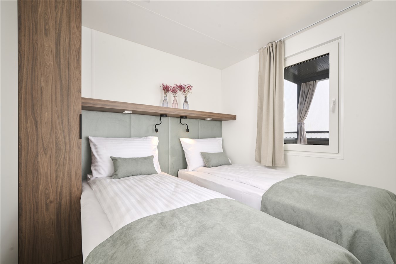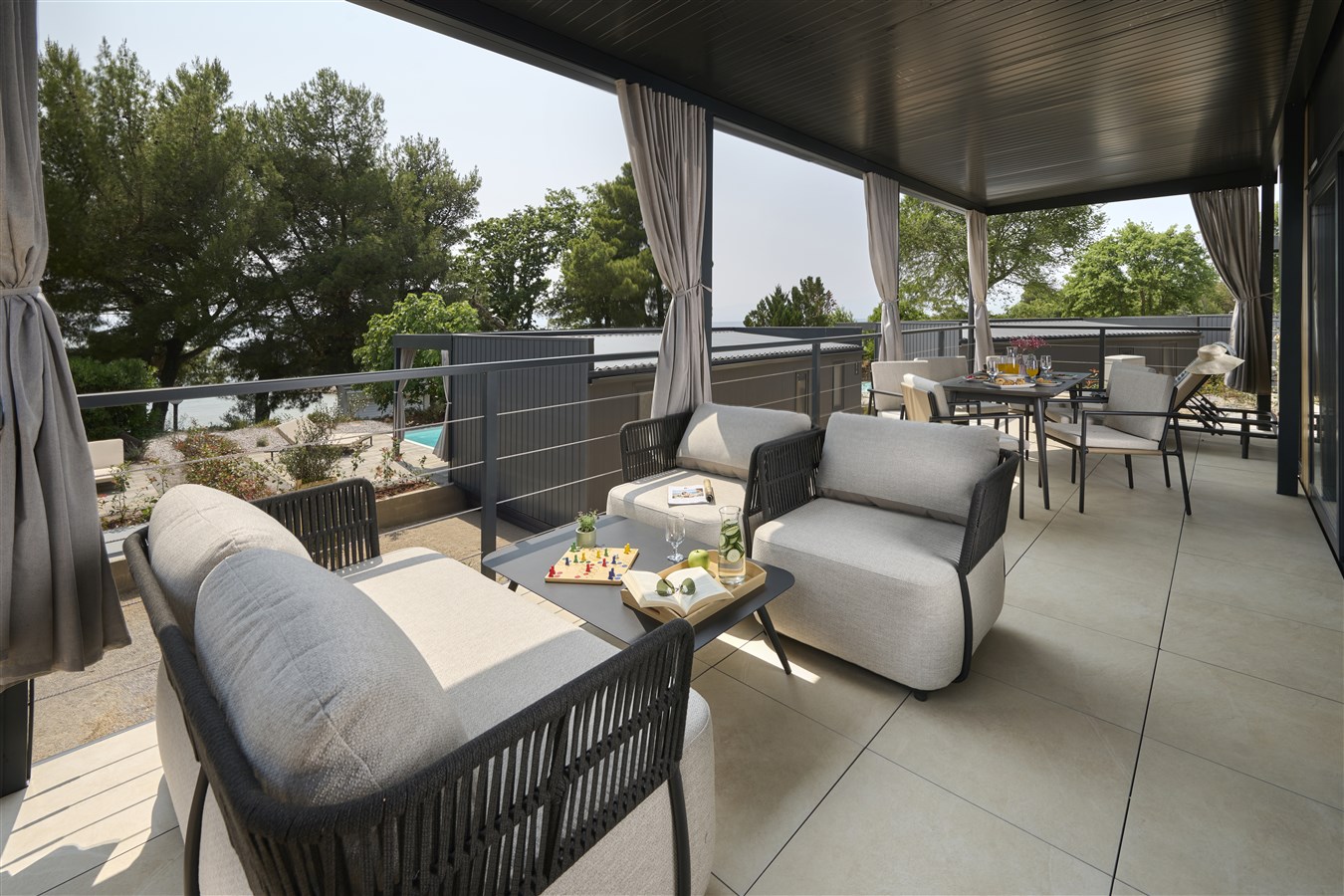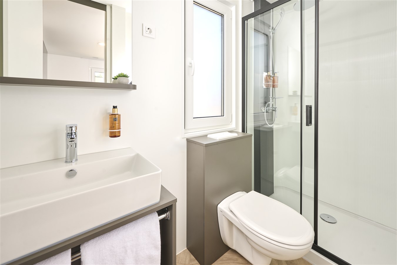 Moderně vybavené mobilní a glampingové domky, ve kterých je plně vybavená kuchyň (konvice, kávovar, mikrovlnná trouba, myčka nádobí, lednice), fén, trezor, klimatizace.Mobilní domek Premium - 34 m2 - 2 dvoulůžkové ložnice (jedna s manželskou postelí, druhá s oddělenými lůžky), 2 koupelny se sprchovým koutem, obývací pokoj s plně vybavenou kuchyní a rozkládacím gaučem pro 1 osobu, terasa (26 m2) s posezením (stůl, 6 židlí, 2 lehátka).Glampingový domek Luxury - 41 m2 - 2 dvoulůžkové ložnice (jedna s manželskou postelí, druhá s oddělenými lůžky), 2 koupelny se sprchovým koutem, obývací pokoj s plně vybavenou kuchyní a rozkládacím gaučem pro 1 osobu, terasa (14 m2) s posezením (stůl, 4 židle, 2 lehátka).Mobilní domek Amber Luxury - 41 m2 - druhá řada od moře - 2 dvoulůžkové ložnice (jedna s manželskou postelí, druhá s oddělenými lůžky), 2 koupelny se sprchovým koutem, obývací pokoj s plně vybavenou kuchyní a rozkládacím gaučem pro 1 osobu, terasa (27 m2) s posezením (stůl, 6 židlí, 2 lehátka).