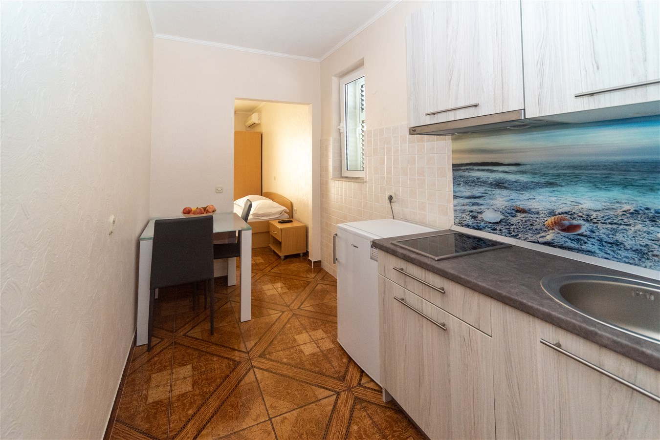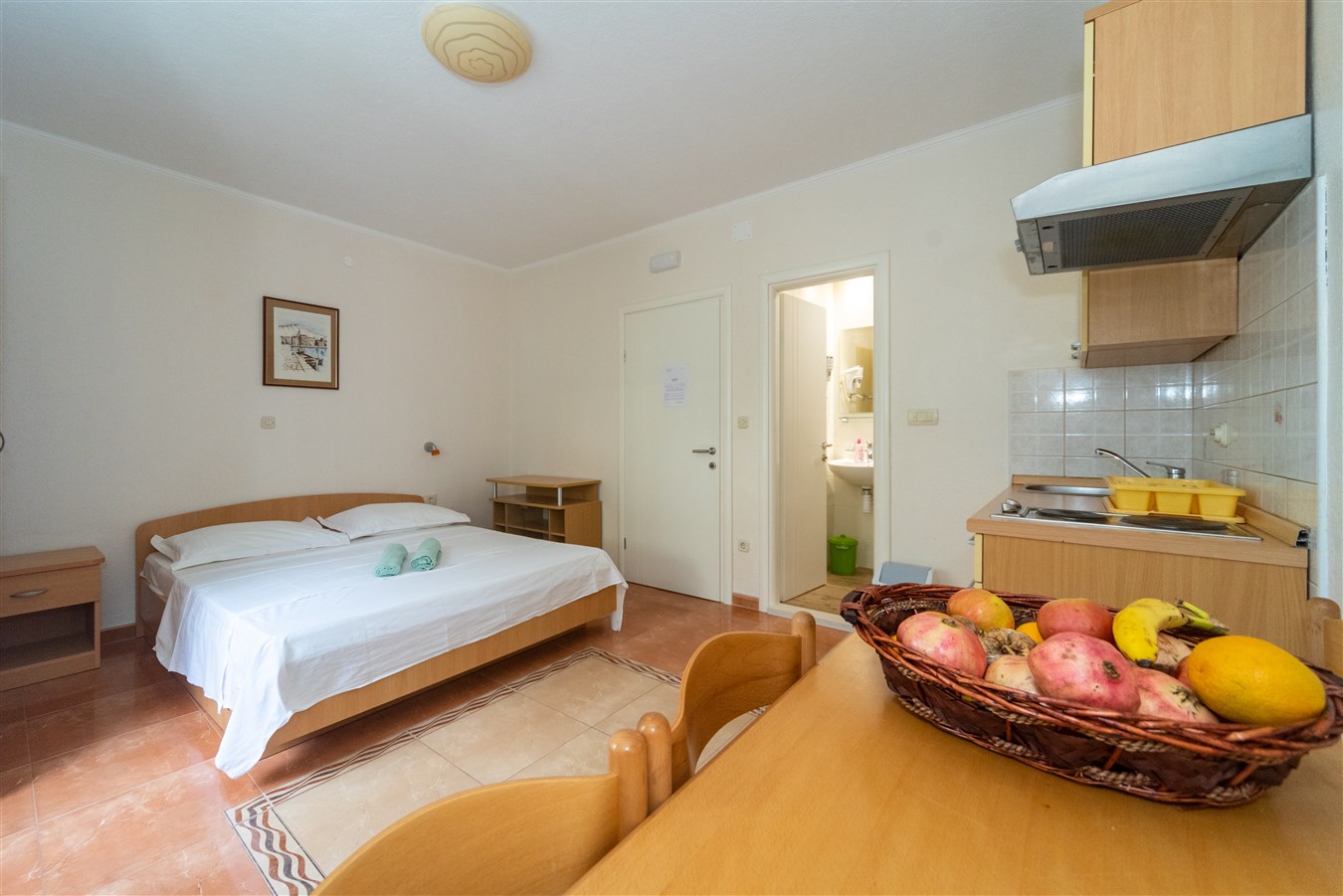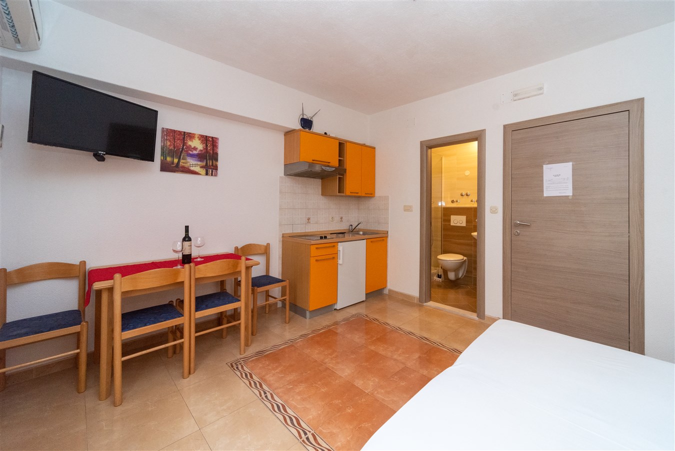 Ve vile jsou dvě studia S2, jedno studio S2+1, dva apartmány A2+2 a pět dvoulůžkových pokojů s přistýlkou.Pokoje, studia i apartmány jsou klimatizovány, mají SAT/TV, WiFi, balkon orientovaný na mořskou stranu. Pokoje nemají k dispozici kuchyň, ale je zde lednička a varná konvice. Studia mají vše v jedné místnosti, koupelnu s toaletou.