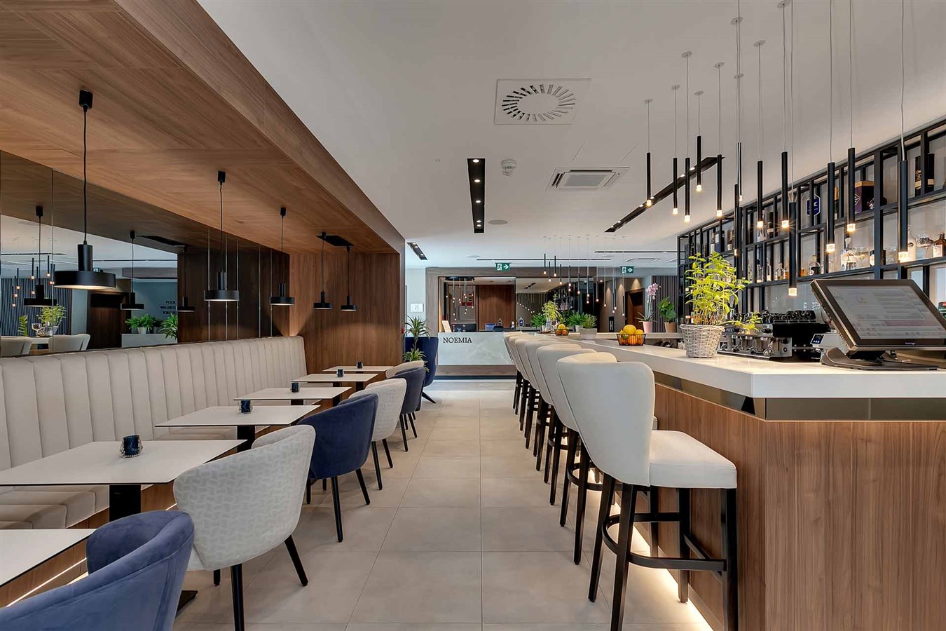 Obec a přístav Baška Voda leží 10 km severozápadně od Makarské a 5 km jihovýchodně od Brely. Baška Voda je charakteristická borovými lesy, které sahají až k dlouhým oblázkovým plážím. Poloha Bašky Vody je okouzlující díky pohoří Biokovo. Letovisko patří k nejoblíbenějším ve Střední Dalmácii. Cílem turistů je pro své čisté moře, piniové lesy a krásné pláže. Nachází se zde historické památky, muzeum i místa pro zábavu a odpočinek. Množství pláží s pozvolným přístupem do vody je ideální pro rodiny s dětmi, soukromí zde naleznou ale i ti, kteří nechtějí být rušeni. Romantická místa, zákoutí, promenády, síť restaurací, pizzerií, diskoték, obchodů a galerií nadchne jistě každého.Boutique hotel Noemia byl otevřen v roce 2020 a nabízí klientům moderně vybavené pokoje. Nachází se v centru Bašky Vody a jen několik kroků od krásné oblázkové pláže a čistě modrého moře. Hotel má 4 patra, jsou zde 2 výtahy, recepce, restaurace, prostorná venkovní terasa, lobby bar, venkovní vyhřívaný bazén, wellness & spa, parkování (omezený počet míst, za poplatek).Domácí zvířata nejsou povolena.