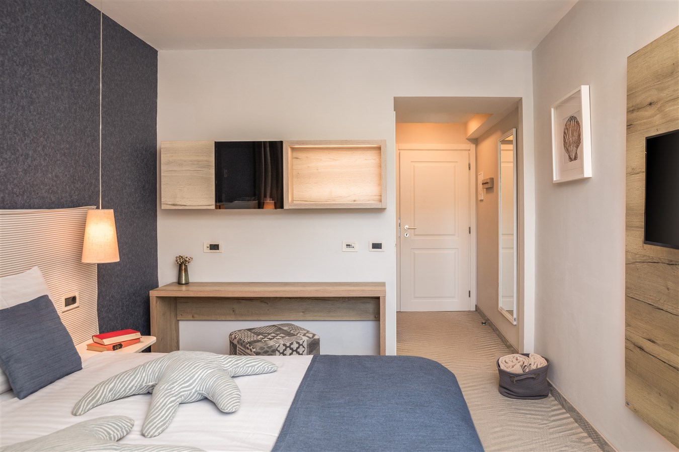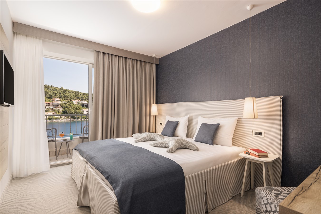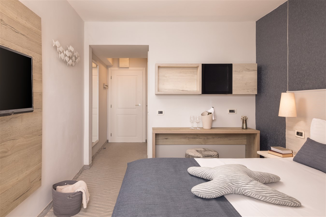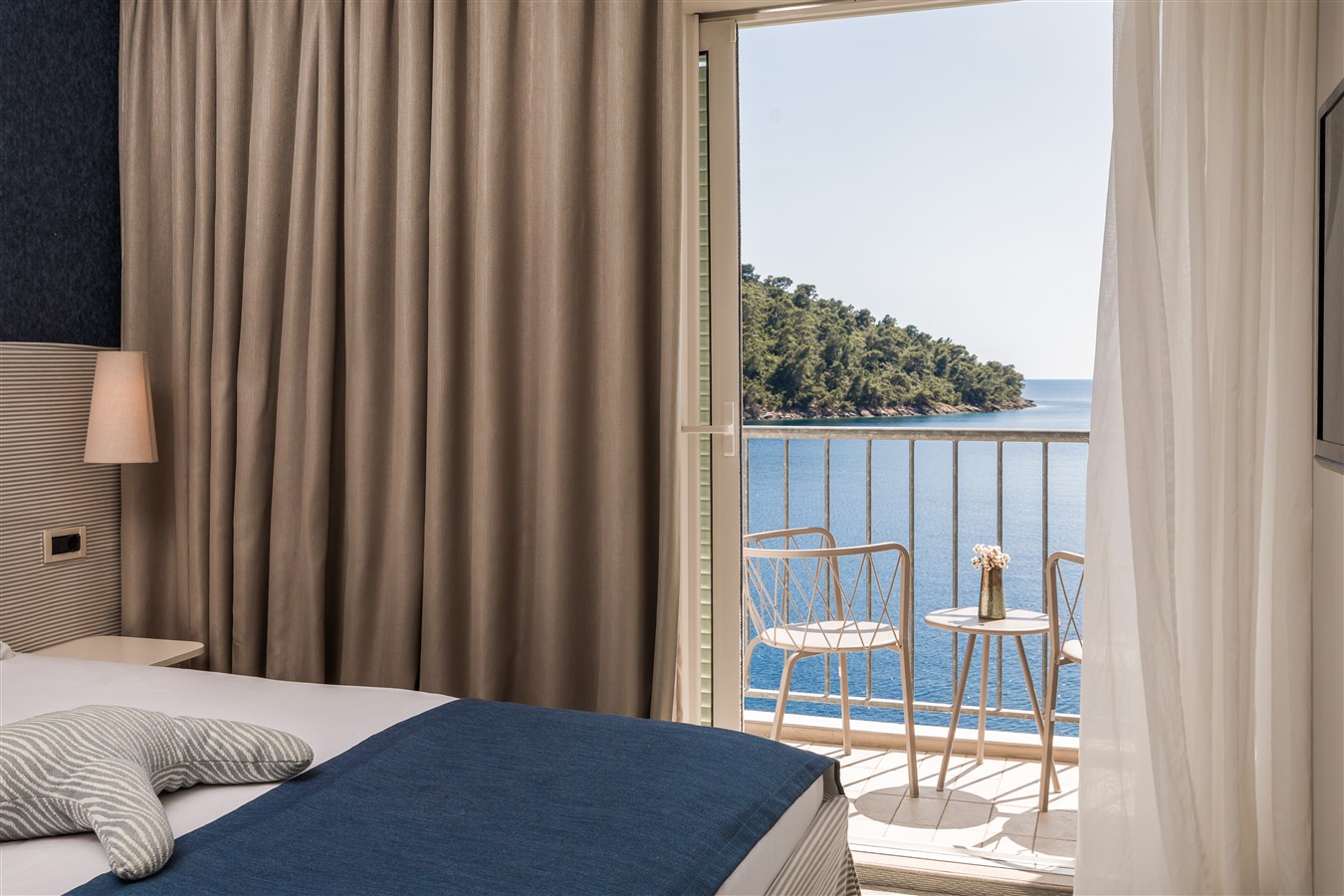 Klimatizované dvoulůžkové pokoje s vlastním příslušenstvím, SAT/TV, fénem, Wi-Fi zdarma, minibarem a trezorem. Všechny pokoje mají balkon s přímým nebo bočním pohledem na moře.Dětská postýlka zdarma na vyžádání.