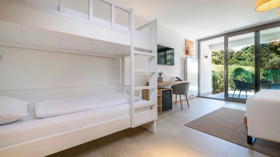 Klimatizované dvoulůžkové pokoje s vlastním sociálním zařízením, SAT/TV, telefonem, trezorem, minibarem, fénem, Wi-Fi, některé pokoje s možností přistýlky a balkonem. Hotel nabízí i rodinné pokoje se 2 přistýlkami formou palandy nebo studio pokoje se 3 přistýlkami, také formou palandy a rozkládacího gauče a pak rodinné pokoje - 2 propojené dvoulůžkové pokoje. Dětská postýlka pro dítě do 1,99 let na vyžádání (za poplatek).