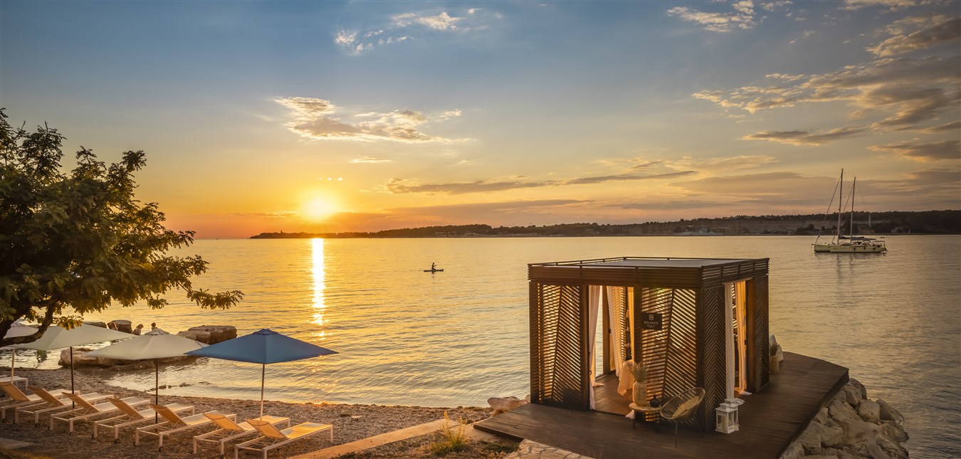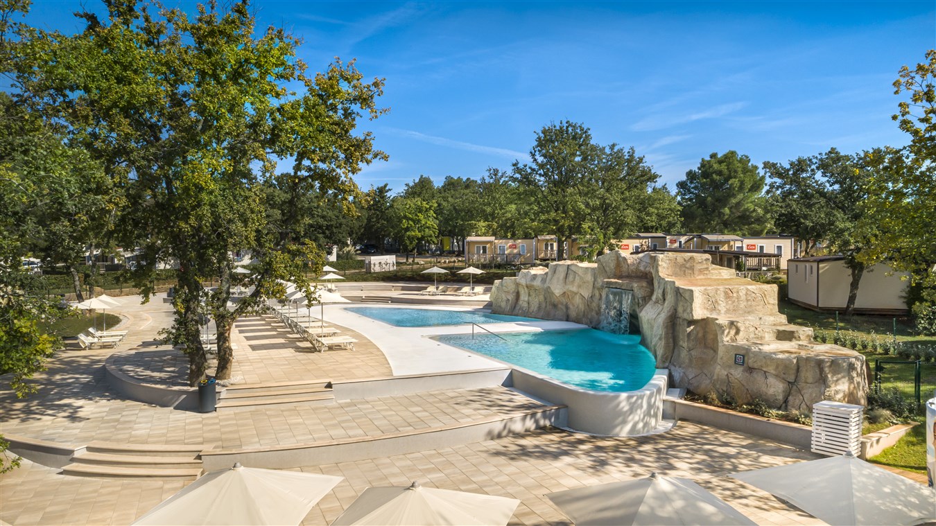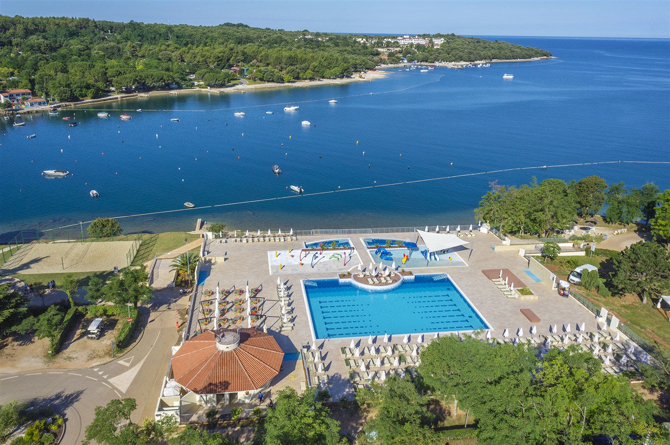 Valamar Camping resort je obklopen tři kilometry pobřeží s překrásnými plážemi, od písečné pláže s prvotřídním vybavením po přírodní koutky s oblázkovými nebo skalnatými plážemi ve stínu borovic. Pláže jsou vzdálené 100-500 m od mobilních domků.