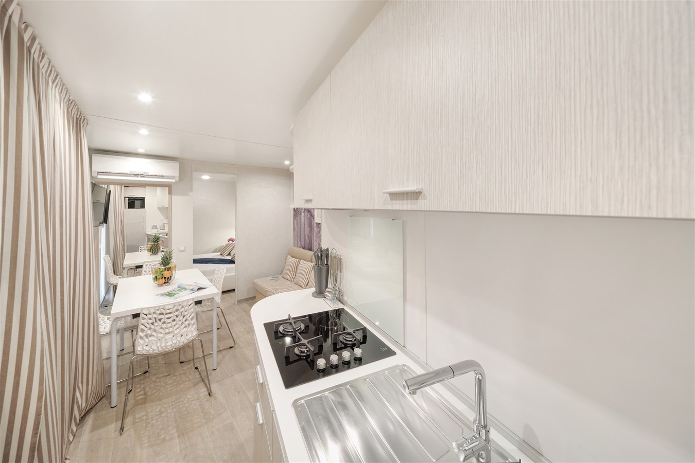 Istrian Home pro 4+2 - 2 ložnice (jedna s manželskou postelí a šatnou a dětský pokoj s šatnou a dvěma lůžky), 2 koupelny, plně vybavená kuchyňka, obývací pokoj s rozkládacím gaučem pro 2 děti, prostorná zastřešená terasa s lehátky, kliemtizace.Marine Hoem pro 4+2 - 2 ložnice (1 ložnice s francouzskou postelí, dětský pokoj s 2 oddělenými postelemi), 2 koupelny, plně vybavená kuchyňka, obývací pokoj s rozkládacím gaučem pro 2 děti, prostorná zastřešená terasa s lehátky, kliemtizace.