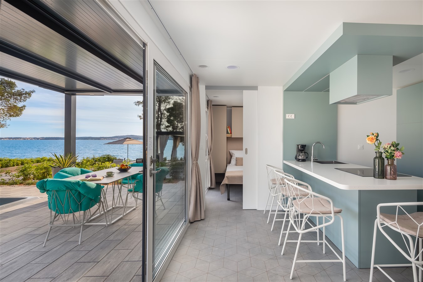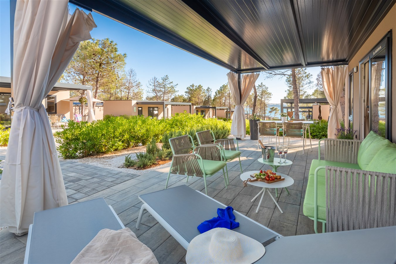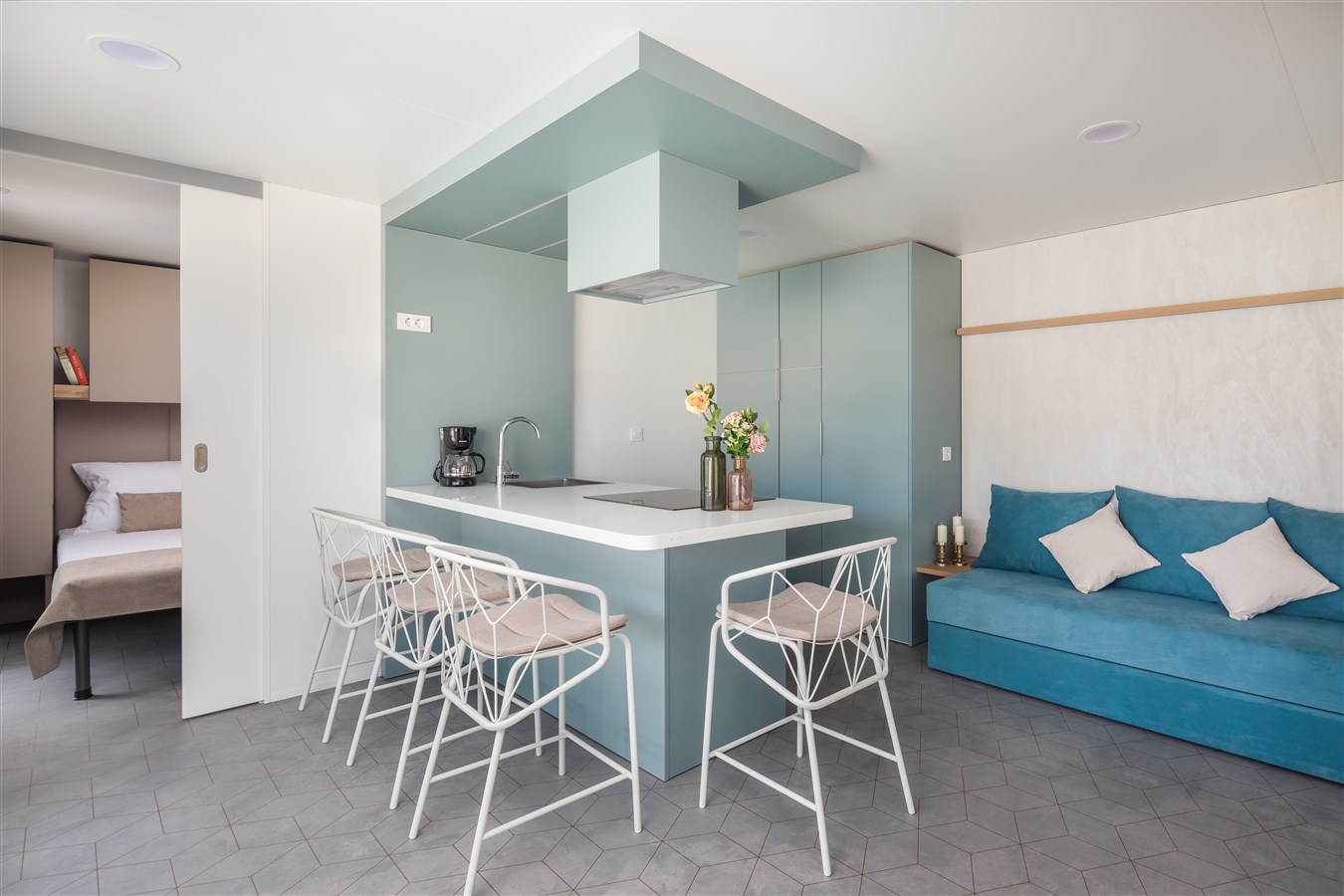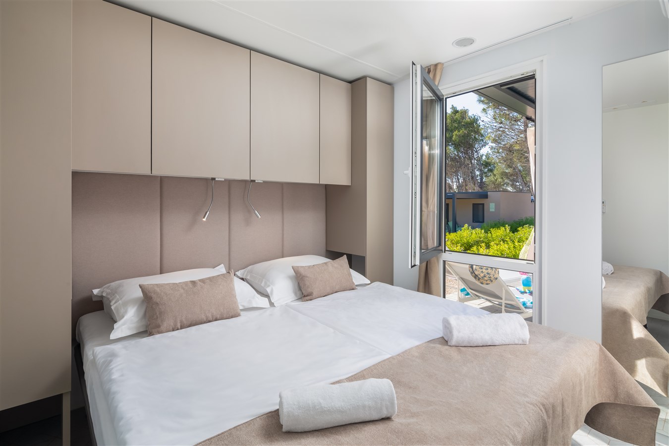 Mobilní domek Premium - 33 m2 - 2 dvoulůžkové ložnice (jedna s manželskou postelí, druhá s oddělenými lůžky), 2 koupelny, obývací místnost s rozkládacím gaučem pro 1 dospělou osobu nebo 2 děti do 11,99 let, plně vybavená kuchyňka, terasa se zahradním nábytkem a lehátky.Mobilní domek Premium Family - 33 m2 - 3 dvoulůžkové ložnice (jedna s manželskou postelí, dvě s oddělenými lůžky), 2 koupelny, obývací místnost s rozkládacím gaučem pro 1 dospělou osobu nebo 2 děti do 11,99 let, plně vybavená kuchyňka, terasa se zahradním nábytkem a lehátky.Mobilní domek Luxury s bazénem - 40 m2 - 2.-5. řada od moře s vlastním vyhřívaným bazénem, 2 dvoulůžkové ložnice (jedna s manželskou postelí, druhá s oddělenými lůžky), 2 koupelny, obývací místnost s rozkládacím gaučem pro 1 dospělou osobu nebo 2 děti do 11,99 let, plně vybavená kuchyňka, terasa se zahradním nábytkem a lehátky.Všechny mobilní domky jsou klimatizované a mají trezor, fén, Wi-Fi.Dětská postýlka na dotaz zdarma.