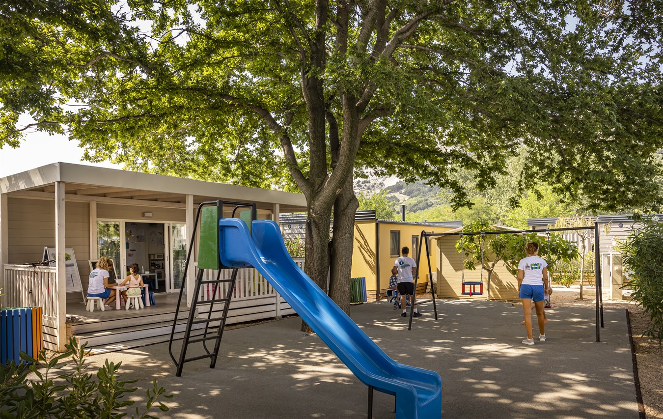 Kemp leží přímo u slavné Vela Plaža — 1,8 km dlouhé oblázkové pláže v Bašce.