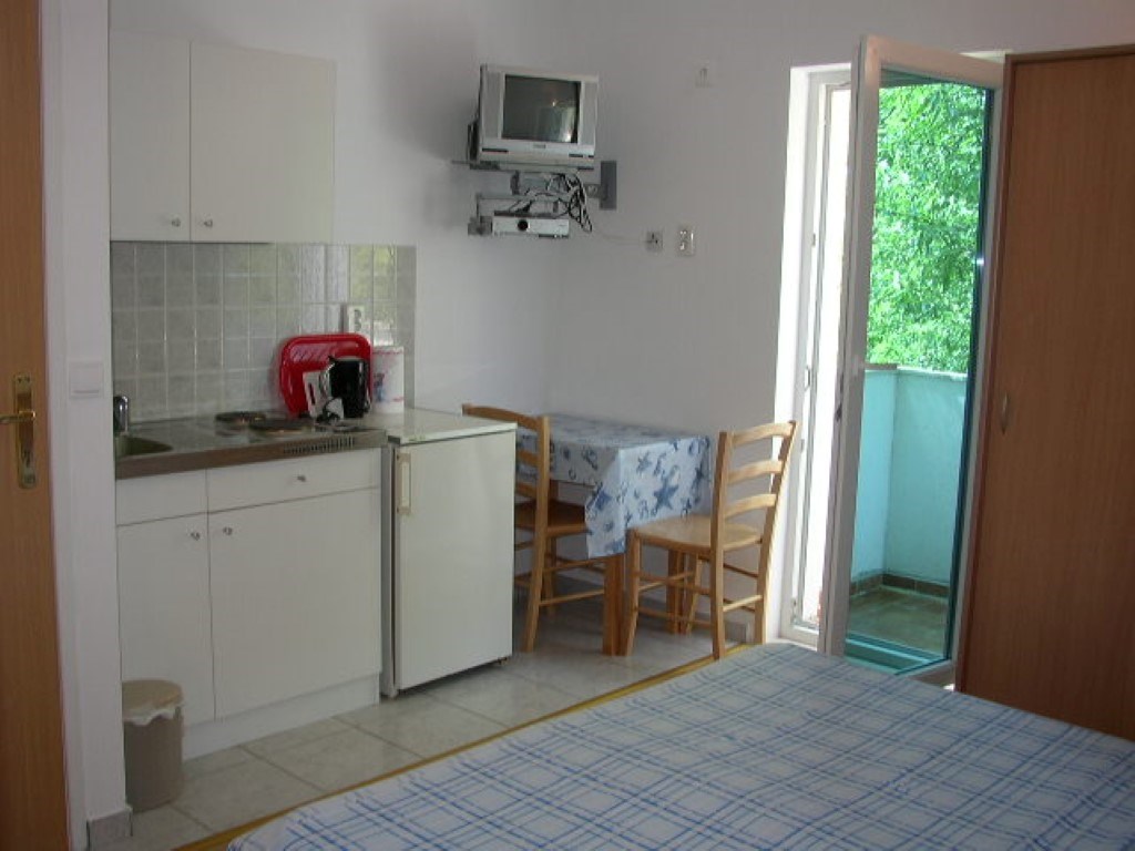 Apartmán A3+(1) pro 3- 4 osoby se skládá z 1 ložnice, obývacího pokoje s gaučem pro 1-2 osoby + vybavená kuchyň, jídelna, SAT-TV, klimatizace, Wi-Fi, koupelna s WC, balkon s hezkým výhledem na moře.Apartmán A2- studio se skládá z jednoho pokoje, kde je ložnice + kuchyňka, jídelní stůl, SAT-TV, klimatizace, Wi-Fi, koupelna s WC, balkon.
